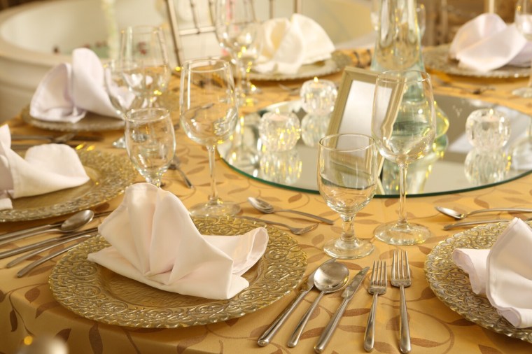Gold and silver-etched show plates, crystal centerpieces, and burnished-colored linens create an elegance background for your wedding. DM us to inquire about our 6 months to pay with 0% interest promotion with BPI credit cards, as well as our complete wedding packages including a FREE VENUE.